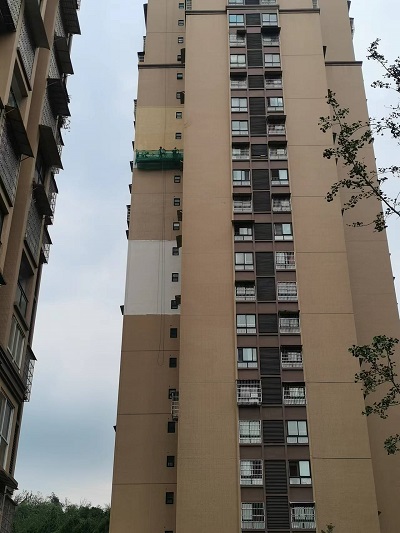 碧翠苑外墻磚脫落現(xiàn)險情,房產(chǎn)公司“蜘蛛俠”立即排危保安全