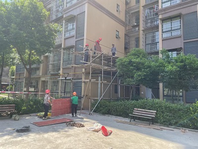 (維修后的4號樓墻面、加固后的小區(qū)雨棚)